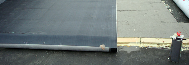 Emergency repairs of both thermoset and thermoplastic roofs are often made with duct tape, roofing tape, peel-and-stick seam tapes, polyethylene sheets, or butyl or polyurethane sealants, depending on the size and severity of the damage. We don’t use liquid or pourable asphalt repair products on single-ply membranes. Permanent repairs usually involve resealing or re-welding large areas of open seams and/or applying professionally installed patches made of the same membrane type. This typically involves a thorough cleaning and priming of the surface to be patched.